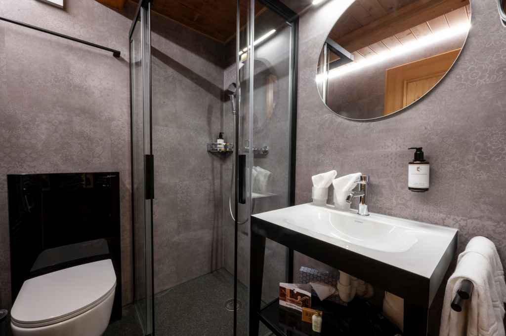 Das Hauptschlafzimmer verfügt über ein komfortables Boxspringbett (180 × 200 cm) und ein offen gestaltetes Badezimmer mit eleganter Designbadewanne und Regewalddusche. Ergänzt wird das Raumangebot durch zwei weitere Schlafzimmer mit einem Boxspringbett (140 × 200 cm) sowie zwei Einzelbetten (je 90 × 200 cm). Ein weiteres Badezimmer mit Dusche und WC steht ebenfalls zur Verfügung. Das ideale Zimmer für eine grosse Familie oder mehrere Paare.