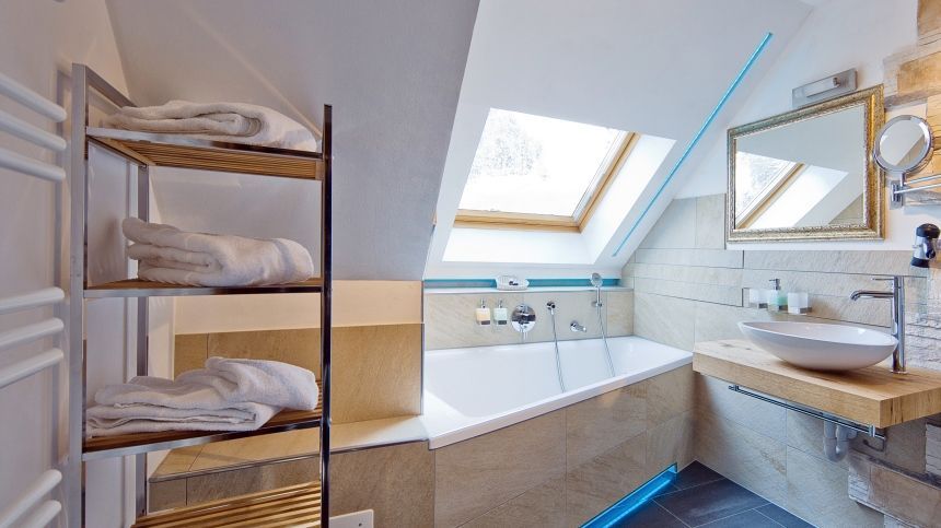 Die Chässpycher Wellness-Suite (50 m2) befindet sich im historischen, heimeligen Nebengebäude Chässpycher.