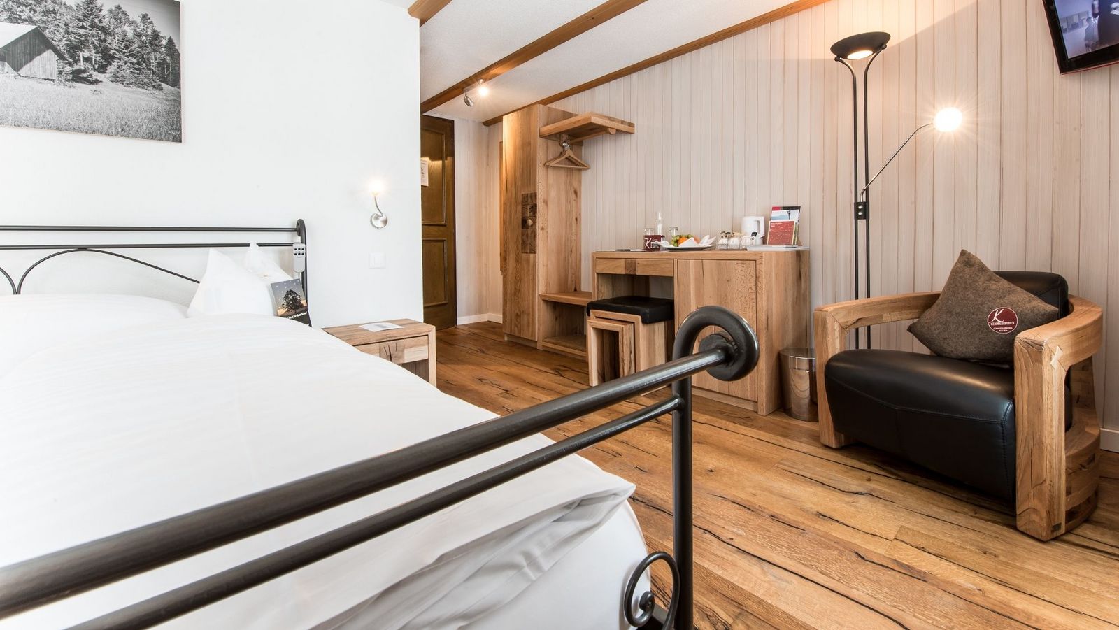 Unsere heimeligen Arvenzimmer (ca. 16 m2) mit einer Arven-Bettrückwand, Arvenkissen und Arvenduftsäulen sorgen, dank dem Arvenholz, für einen tieferen und entspannteren Schlaf.