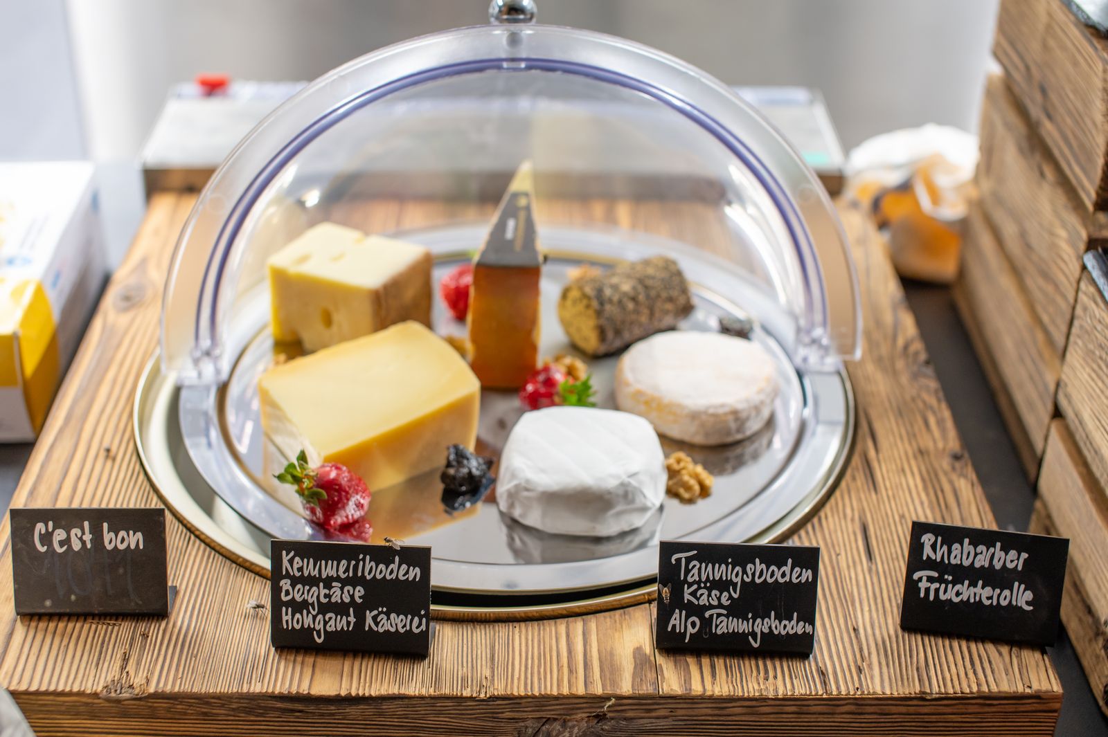 Verschiedene Käsesorten aus der Region runden das Buffet ab. Sie finden Produkte von der Hohgant Käserei in Schangnau, der Bergkäserei Marbach und aus der Käserei Jumi in Boll.