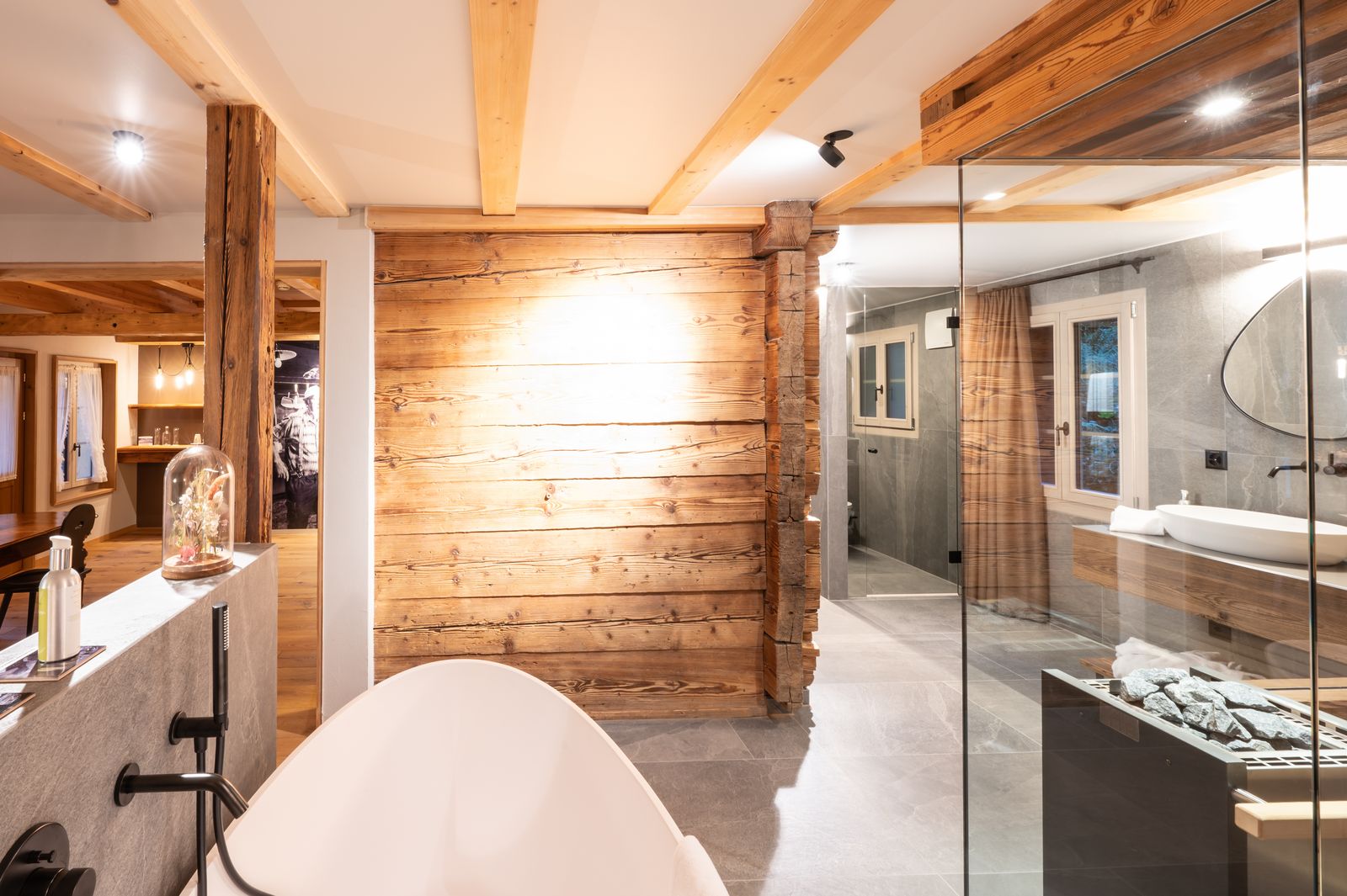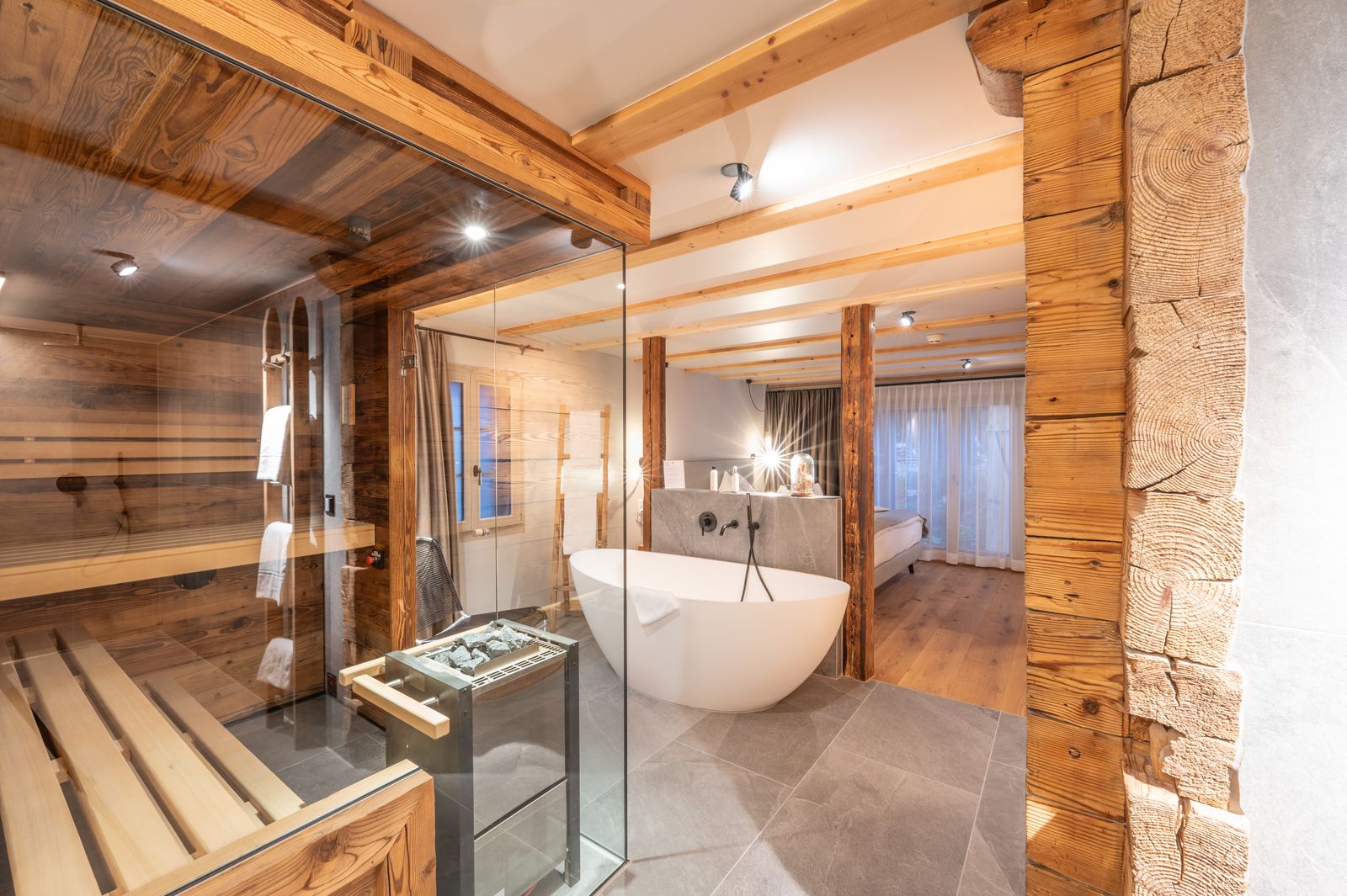 Die Chässpycher Wellness-Suite (50 m2) befindet sich im historischen, heimeligen Nebengebäude Chässpycher.