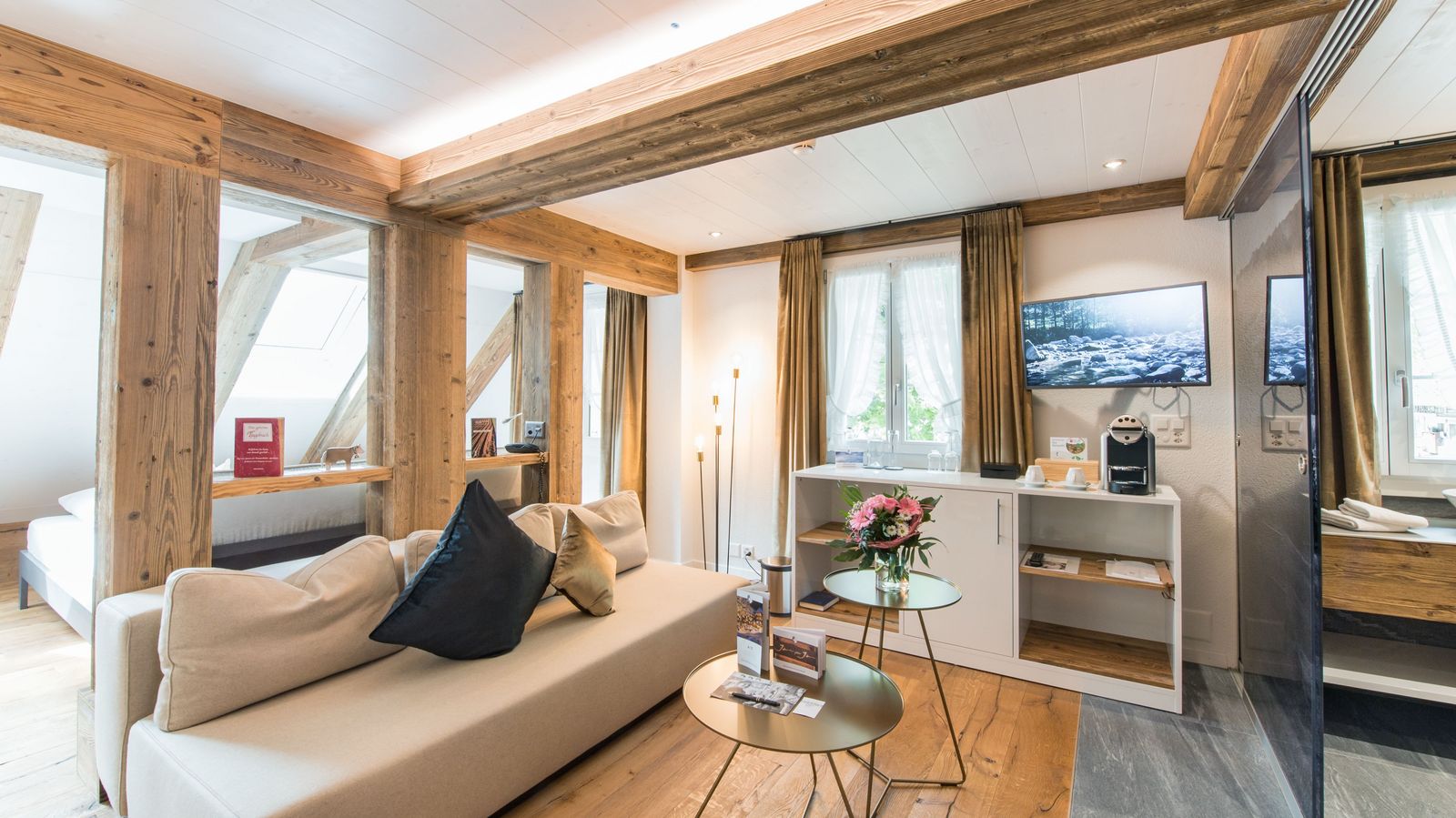 Im historischen Nebengebäude Chässpycher, wo früher der Käse der naheligenen Alpen gelagert und die Glocken der Kühe aufbewahrt wurden, befinden sich zwei neue Bijous und ein heimeliges Familienzimmer. Geniessen Sie Erholung, Genuss und kreative Momente in unserem traditionellen Spycher.