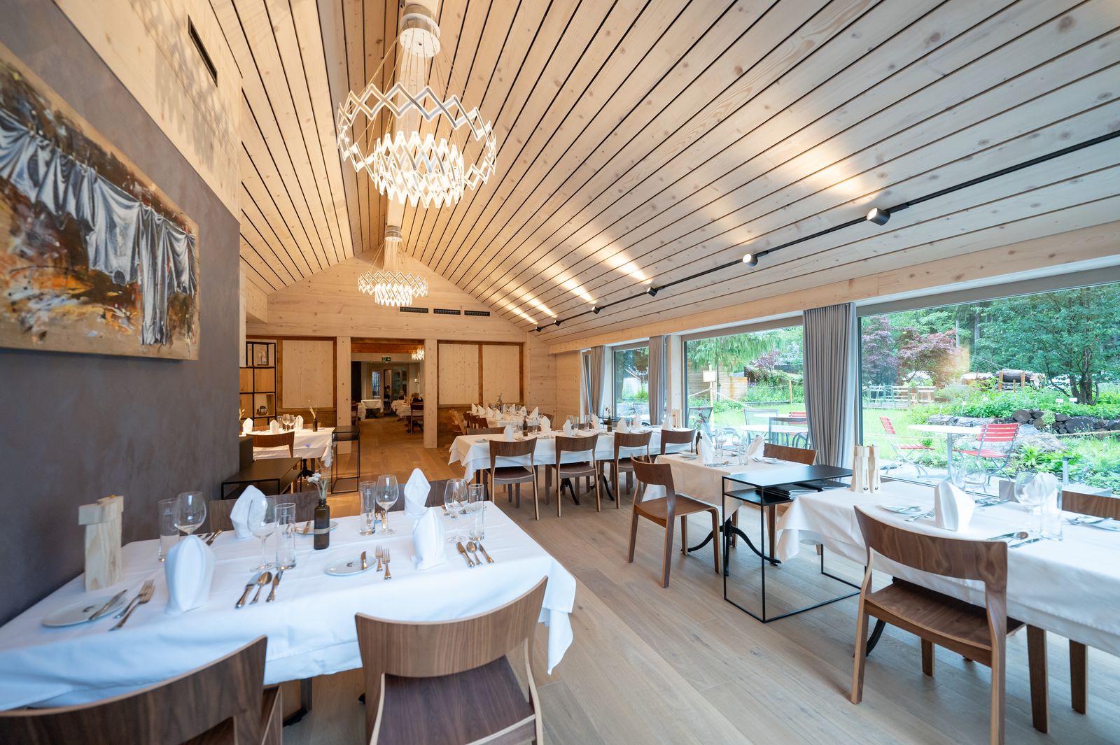 Die Ausstattung des Gastraumes ist ganz in heimeligem Holz gehalten. An den Wänden findet man Portraits unserer Kulinarikpartner, wodurch man quasi inmitten des Emmentals schlemmen kann.