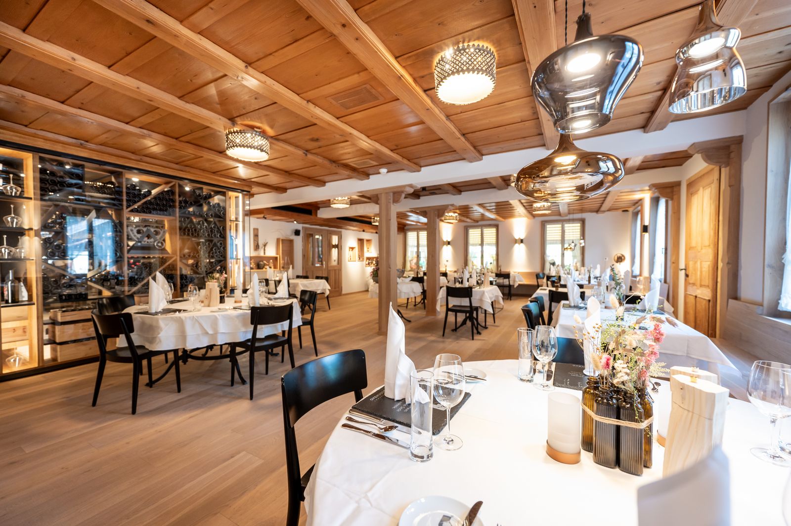 In unserem grössten Saal finden Sie urchige, originalgetreue Holzvertäfelung in Kombination mit den historischen Dekorationselementen und der raffinierten Beleuchtung.
