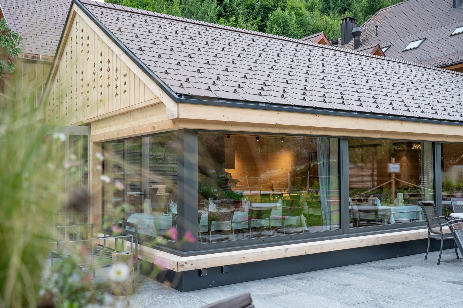 Unsere Sommerterrasse ist idyllisch inmitten des Kemmeriboden gelegen.