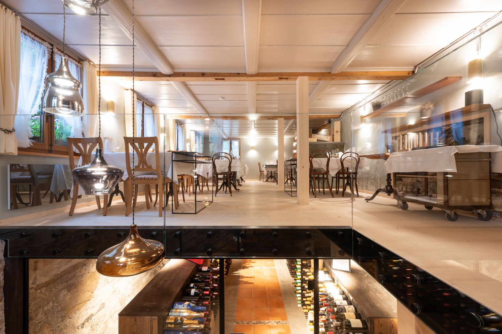 Im Untergeschoss befindet sich unsere Weingalerie, wo wir genussvolle Tropfen lagern.